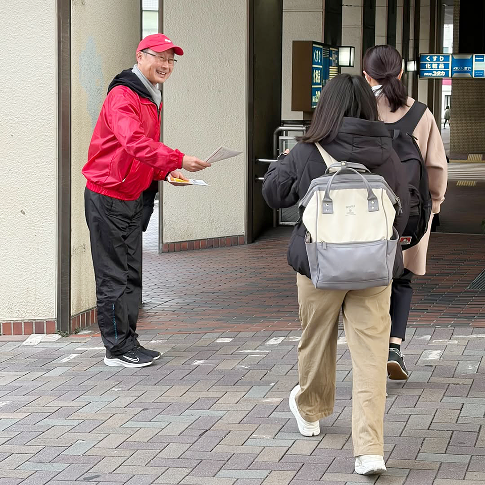立ってみたら、自転車を止めてチラシを取ってくださる方、車から声援をくださる方。