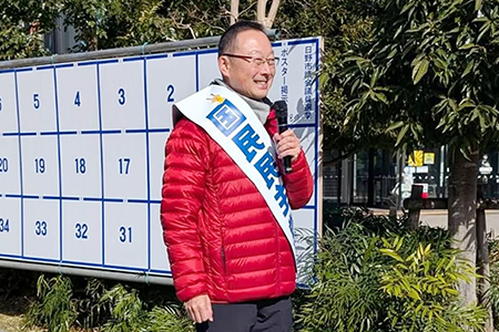 東京21区初街頭は、JR豊田駅近くのイオンモール前