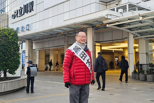 知名度ゼロからの闘い。 1/30(金)、#国民民主党 の榛葉幹事長が立川に来てくださいました。